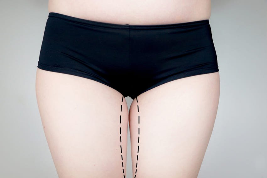Belső combemelés esetén a plasztikai sebész a gát és a comb közötti ráncban bemetszést ejt, mielőtt a combemelést és a zsírleszívást elvégezné. Ez az eljárás csak a felső és belső comb bőrét feszesíti.