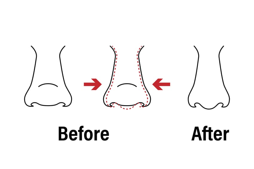 - Orrplasztika a túlságosan nyitott orrlyukak csökkentésére.